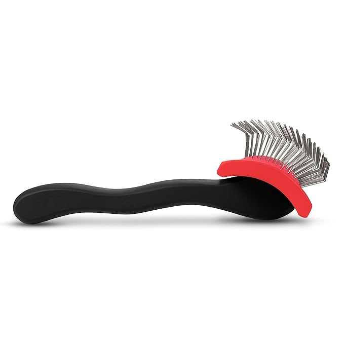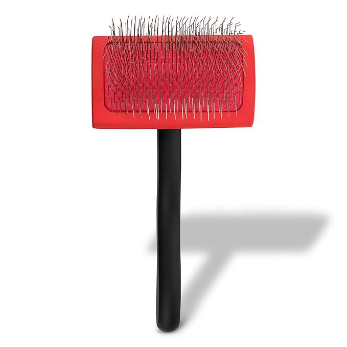- COMFORT & SAFETY - Angled, extra-long sturdy stainless steel pins penetrate coats with ease. Cushioned rubber pad provides comfortable experience for pets.