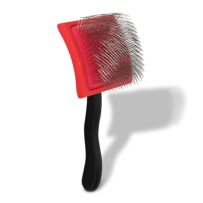- COMFORT & SAFETY - Angled, extra-long sturdy stainless steel pins penetrate coats with ease. Cushioned rubber pad provides comfortable experience for pets.