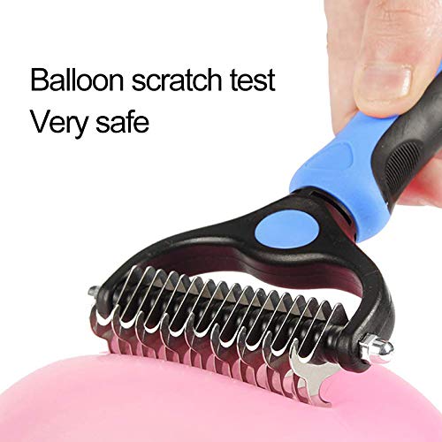 - BEST PET BRUSH FOR MEDIUM TO LONG HAIRED DOGS & CATS - 9 rounded teeth on one side for easy removal of mats and tangles (USE SHORT STROKES) / 17 rounded teeth on other side perfect for deshedding and thinning hair. Great deshedding & dematting comb for long haired cats and dogs.