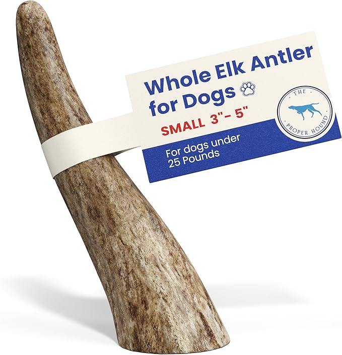 The Proper Hound® Whole Elk Antlers for Dogs [Long Lasting] - Elk Bones for Dogs Humanely Sourced - Elk Horns for Dogs - Dog Elk Antler Chews - Antlers for Small Dogs Under 25 Pounds - Ready to CHEW
