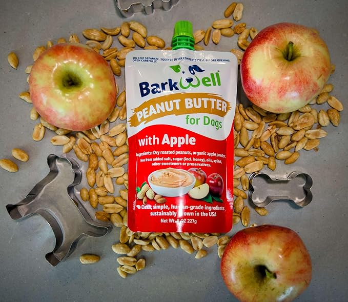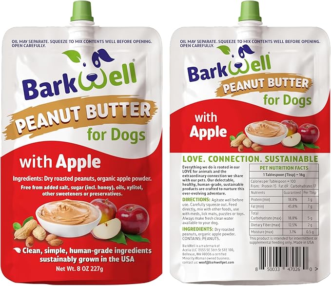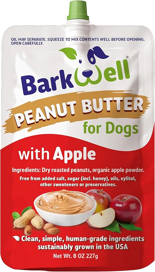Peanut Butter Squeeze - 8oz Pouch All-Natural Dog Peanut Butter with Apple, Sourced and Made in The USA Dog Treat