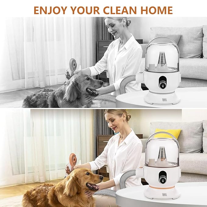- LOW NOISE & HIGH SUCTION: Suspension motor combined with multi-point anti-noise design, the noise is only 50dB. Won't scare your dog or cat during grooming and effectively protect their sensitive hearing.