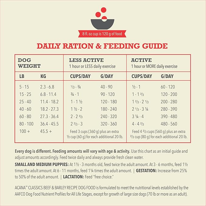 - Thoughtfully balanced recipes with protein-rich beef, wholesome grains, vegetables and fruit. Packed with nutrients, not fillers, for less than $1.40/day*.