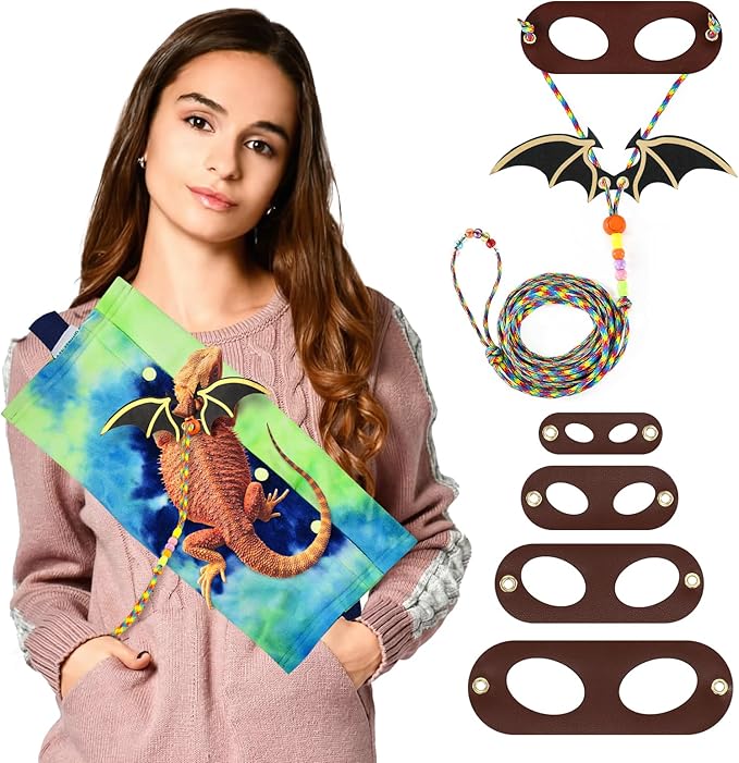 LIKZINWA Bearded Dragon Sling Carrier and Leash Harness,Small Animal Carrier with Adjustable Strap and 4 Size Pack New Dinosaur Wing Reptile Harness(Carrier+Wing)