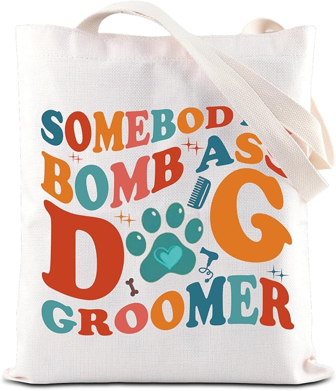 FOTAP Dog Groomer Tote Bag - Somebody's Bomb As Dog Stylist Gift Appreciation