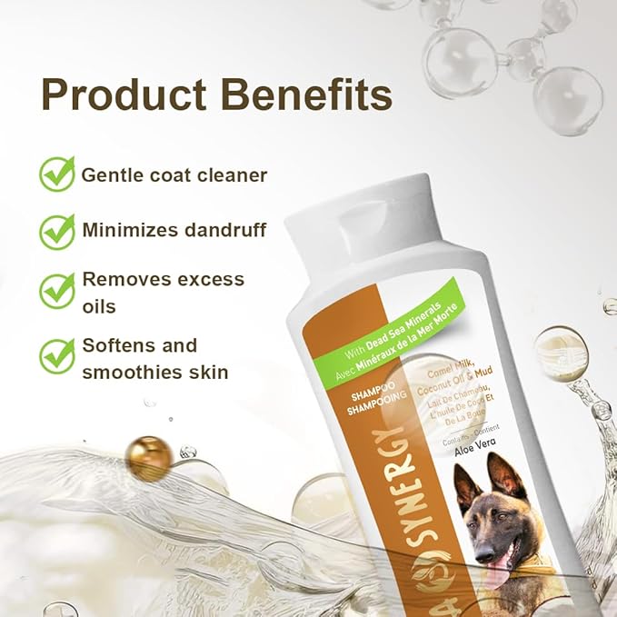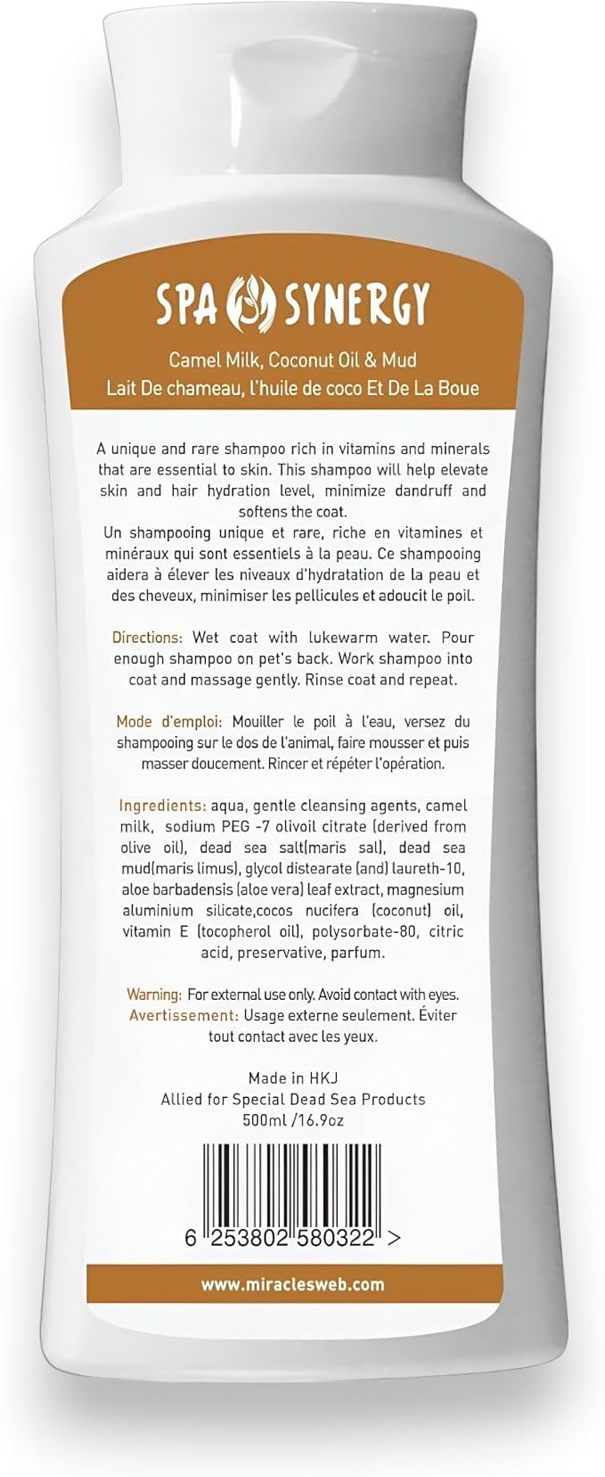 Pet Dog Shampoo Mud and Natural Dead Sea Mineral Rich, Aloe Vera & Vitamin-E, Soothing, Soften, Anti Dandruff, Cleansing- Camel Milk & Coconut Oil - (1) Bottle 16.5 FL OZ