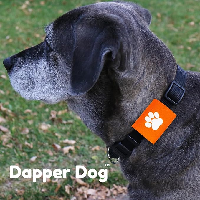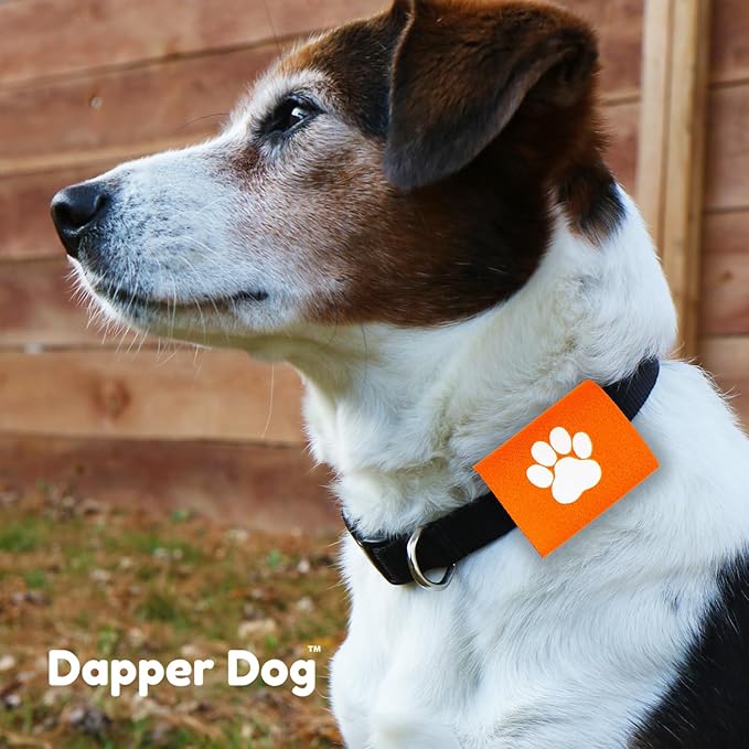 Dapper Dog Pet Tag Silencer and AirTag Holder (Orange with White Paw)