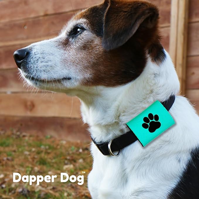 Dapper Dog Pet Tag Silencer and AirTag Holder (Teal with Black Paw)