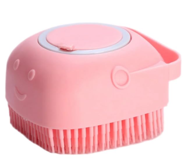 Grooming Silicone Pet Bath Brush With Shampoo Dispenser (Pink)