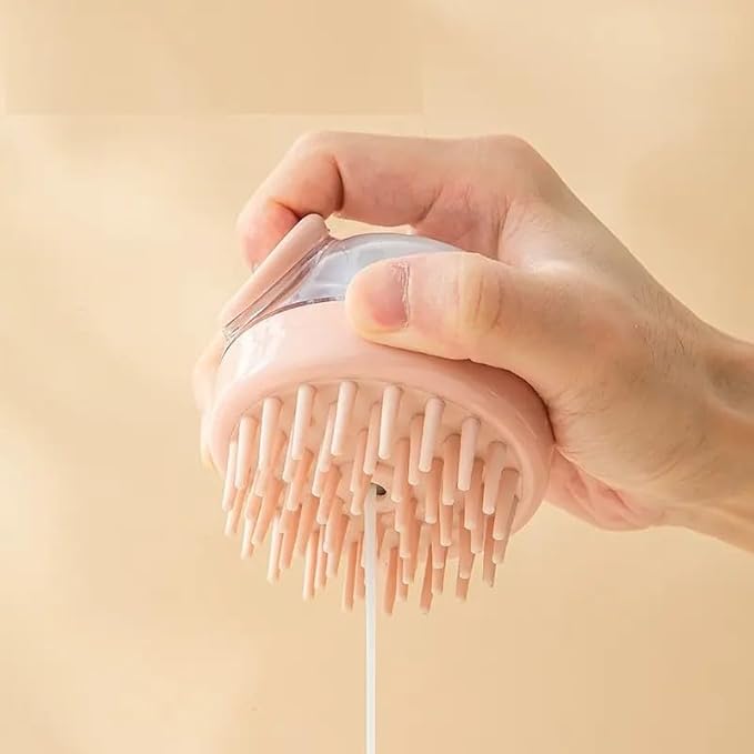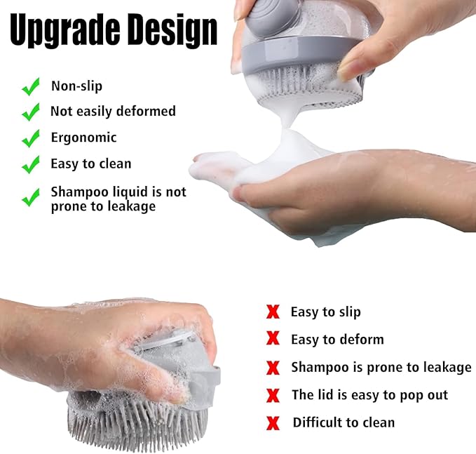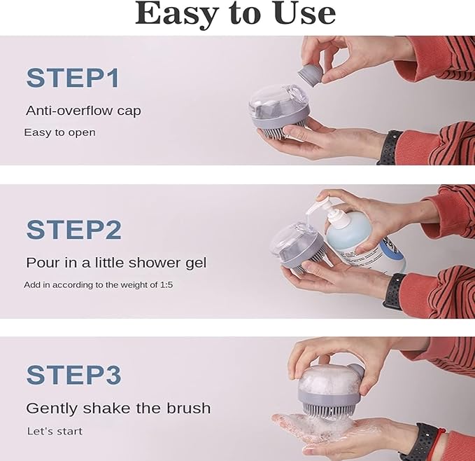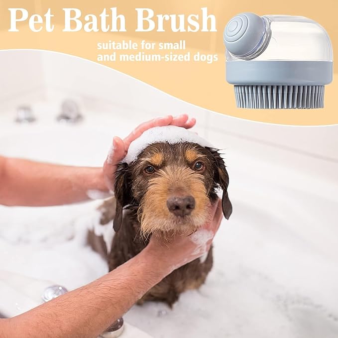 - Dog Bath Brush Pet Shampoo Brush Silicone Puppy Brush Dog Shower Brush with Soap Dispenser Grooming Shower Brush (Grey)