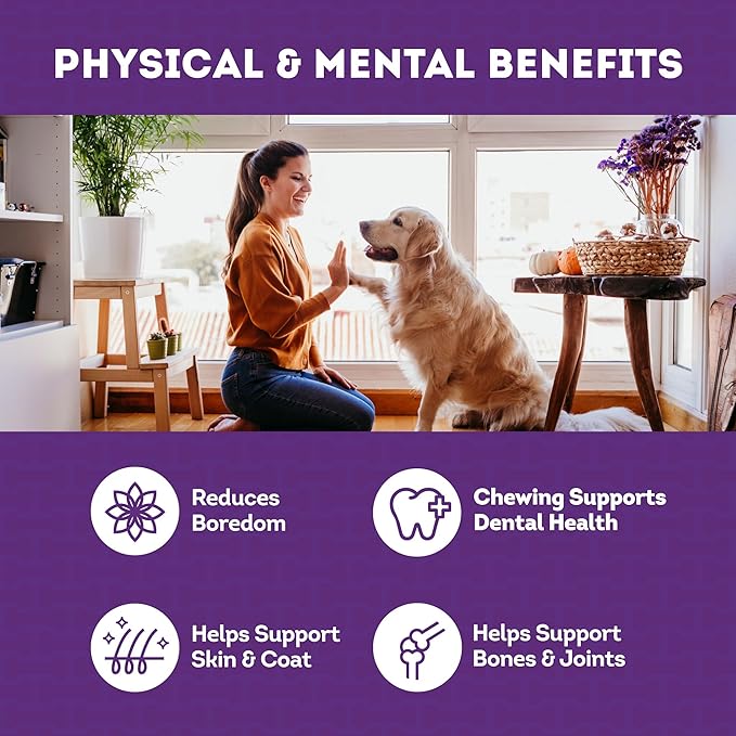 - PROMOTES DENTAL HEALTH: Chewing on rawhide helps improve teeth and gum health by scraping plaque off your dog's teeth and preventing tartar build-up