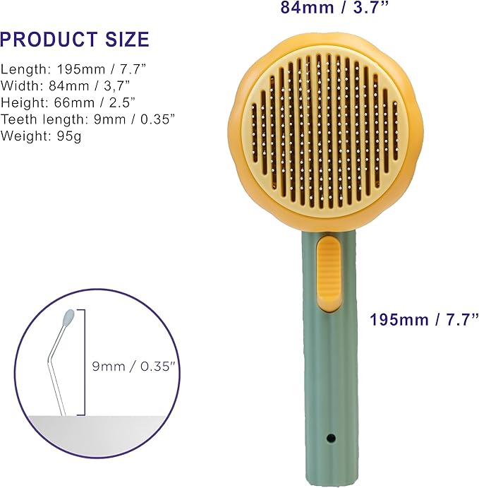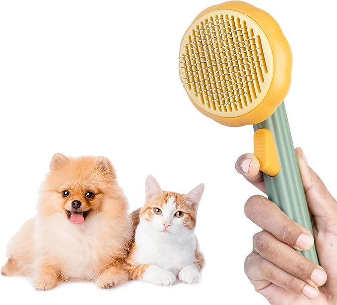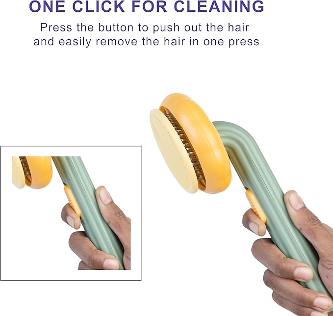 - ONE-CLICK CLEANING BUTTON - cat/dog brush with One-Click Cleaning Button saves time and energy when grooming and cleaning. Simply click the button to auto release the collected shed hair. The brushed hair can be easily pushed out from the bristles. Perfect for cat and dog, rabbits.