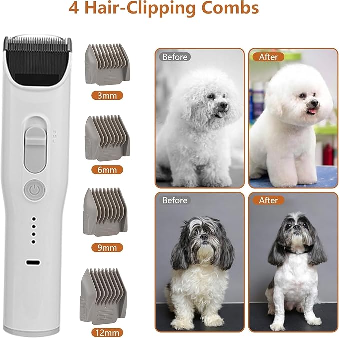 - 50dB LOW NOISE DESIGN:Pet clippers for dogs with low noise design to help the pet feel at ease and no longer afraid of haircut.Suspension motor combined with multi-point anti-noise design, the noise is only 50dB.