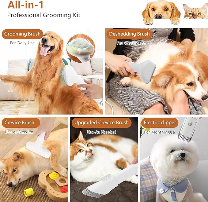 Pet Grooming Vacuum,Pet Grooming Kit & Vacuum Suction 99% Pet Hair,Dog Vacuum for Shedding Grooming,Pet Grooming Vacuum for Dogs&Cats,5 in-1 Pet Grooming Kit,Dog Hair Remover