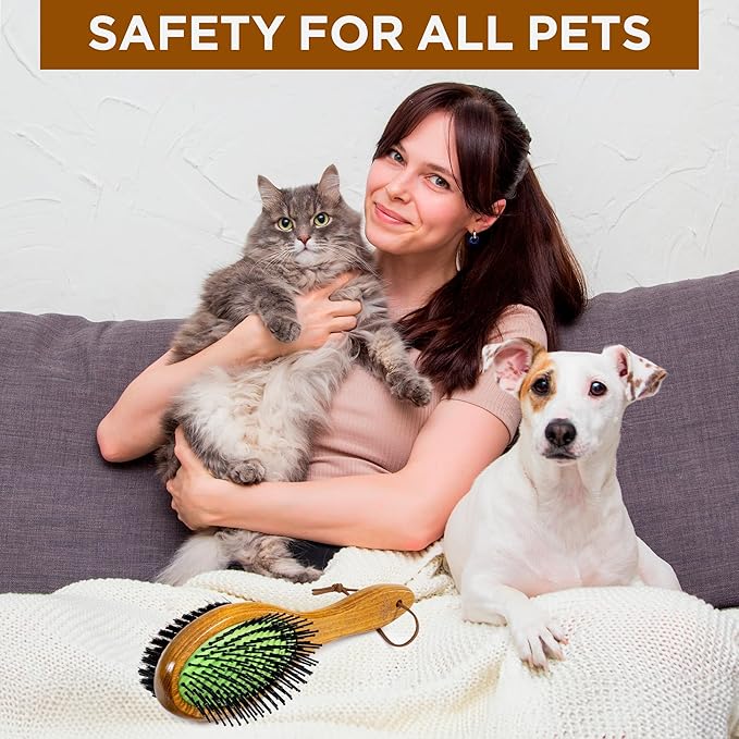 - Double-sided Dog Hair Remover: This pet brush comes with a 2-in-1 design, allowing you to use each side for a different beneficial effect on your pet's skin and coat. The dog comb stimulates your pet's skin and distributes natural oils through its coat, giving it a glossy look. Brushing also helps prevent tangles, which is especially important for long-haired cats, dogs or pets prone to matting.