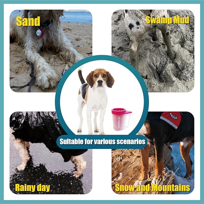 - 【Easy to Use Dog Feet Cleaner- Just these steps】 1. Pour clean water into a cup 2. put the dog's paws in the cup 3. rotate the cup for a while to remove the mud from the paws.Simple and easy to use, just rinse and keep on hand for next muddy encounter.