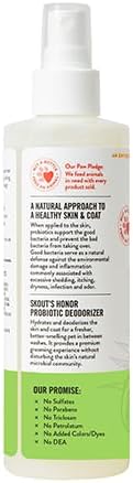 - Hydrates and Deodorizes - Keep your pet smelling fresh and feeling comfortable with Skout's Honor pet deodorizer spray, designed to hydrate and deodorize their skin and coat between washes.