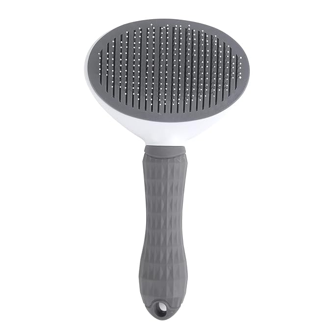 The pet grooming brush works wonders on my golden retriever’s thick coat. It removes loose fur effortlessly and my dog actually enjoys being brushed now.