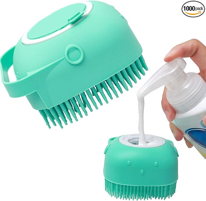 Dropshipping Soft Safe Silicone Pet Bathroom Massage Cleaning Grooming Tools Dog Cat Bath Brush with Shampoo Box (Blue), Small