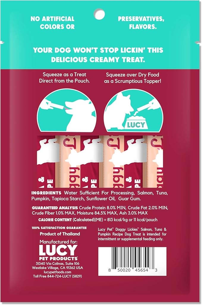 Lucy Pet® Doggy Lickies™ Salmon, Tuna & Pumpkin Recipe Creamy Purée Dog Treat 4oz