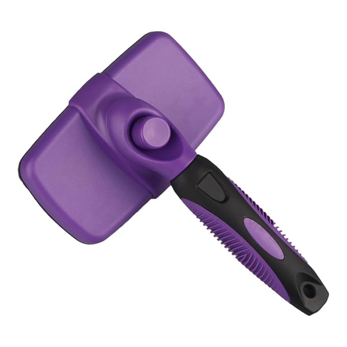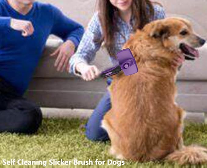 Self Cleaning Slicker Brush for Dogs Cats Brush for Shedding Grooming Brushes for Long Short Haired Pets (Purple)