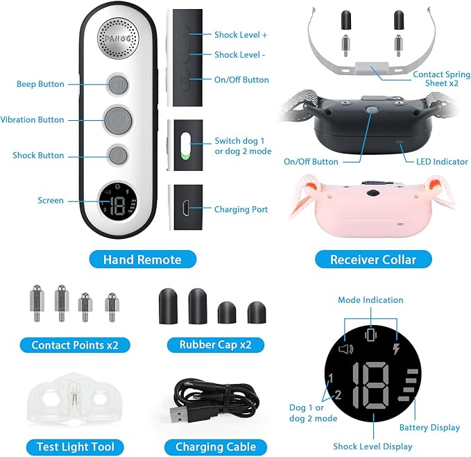 - 【3 Safe Modes Training Collar】Our PAHOG dog shock collar offers 3 safe and effective humane training modes: beep (standard), vibration (standard), safe shock (adjustable 1-16 levels). You can choose the right mode level to train your dog, correcting bad behaviors in time.
