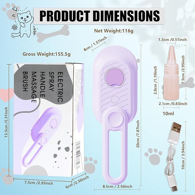 - 😺 [IMPROVE YOUR PETS EXPERIENCE]: You can lightly mist your furry pet's coat before grooming, this helps to further soften the hair and make the grooming process even more effective. To get them used to the steamy pet brush for dogs, you can start brushing them first and turn the misting on once you'd gotten a few strokes in.