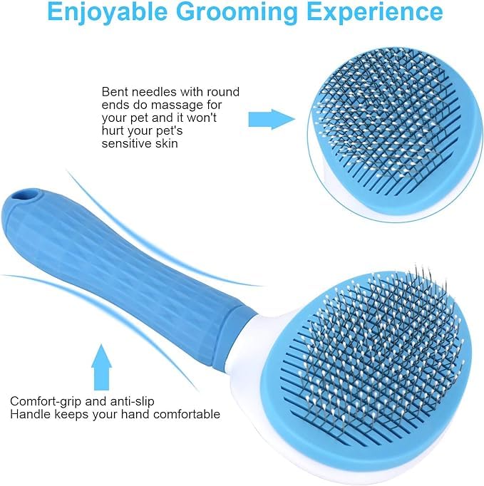 The pet grooming brush works wonders on my golden retriever’s thick coat. It removes loose fur effortlessly and my dog actually enjoys being brushed now.