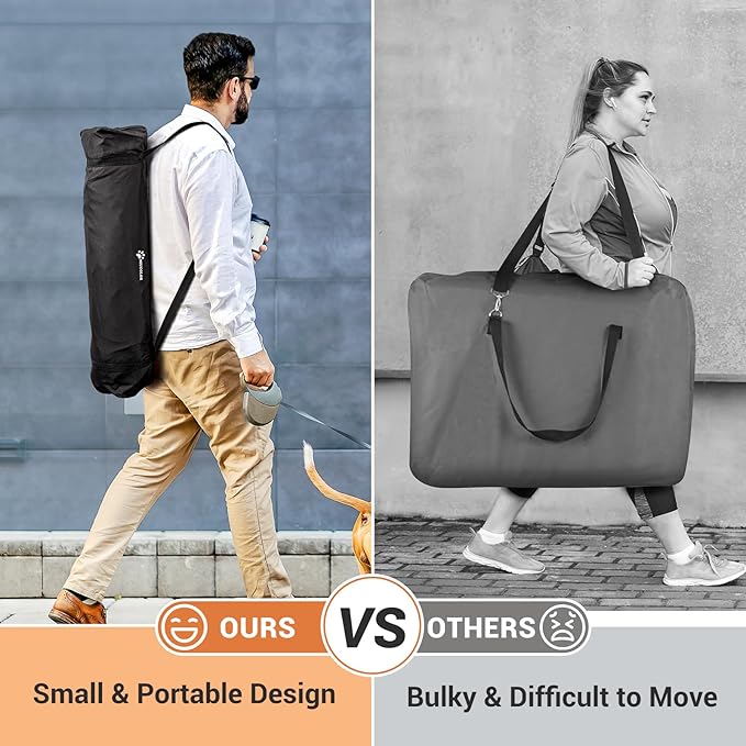 - 【Portable Versatility】 Designed for travel and convenience, the foldable steel frame and lightweight build allow effortless setup in three steps. The included carry bag features adjustable handles and padded shoulder straps for versatile transport, making it perfect for camping, car trips, or apartment living. Its compact storage size and collapsible design save space without compromising stability, adapting seamlessly to dynamic environments.