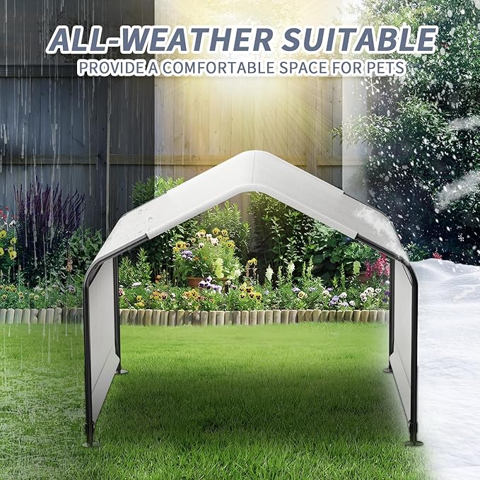 - Versatile and Spacious: This dog shade for outside is spacious enough for large dogs and suitable for pets of all sizes. It can also serve as a shelter for other animals like chickens, ducks, and cat. Ideal for use in various outdoor settings, including yards and gardens, it provides a versatile and comfortable space for your beloved pets.