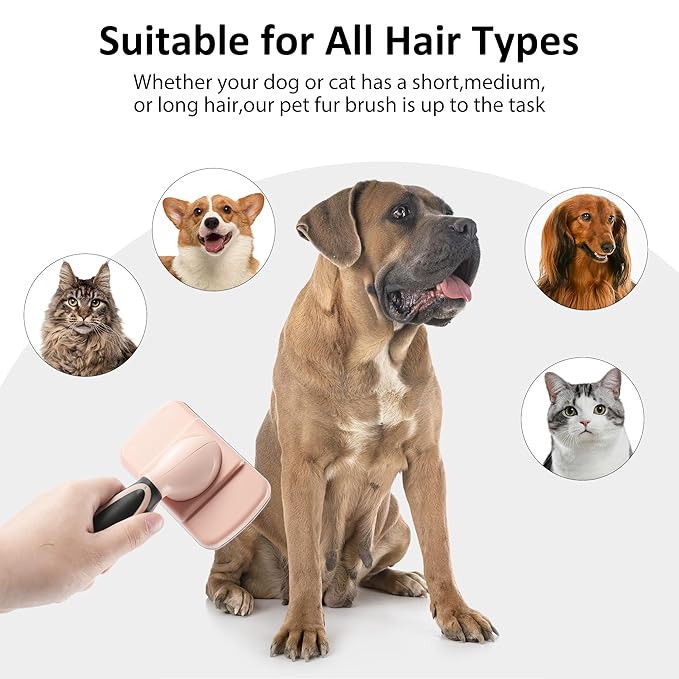 - Suitable for All Hair Types - Whether your dog or cat(such as pomeranian,shepherd,poodle,goldendoodle,labrador,husky,persian cat.) has a short,medium,or long hair,our pet fur brush is up to the task.The pet hair brush effectively removes tangles and mats,keeping your pet's coat looking neat and well-maintained.