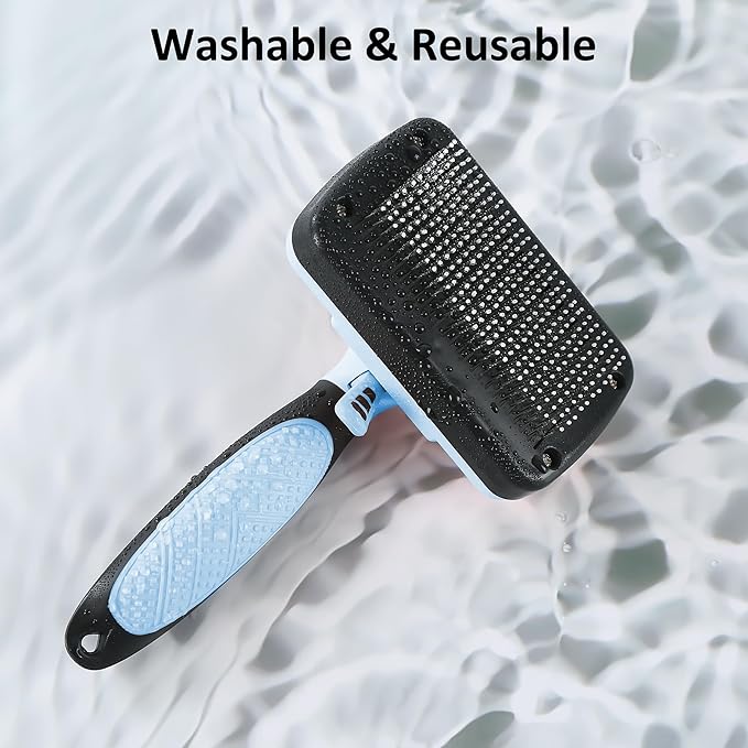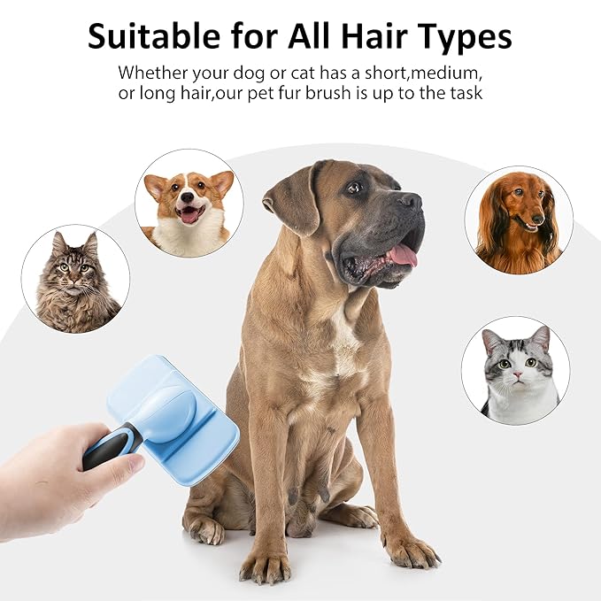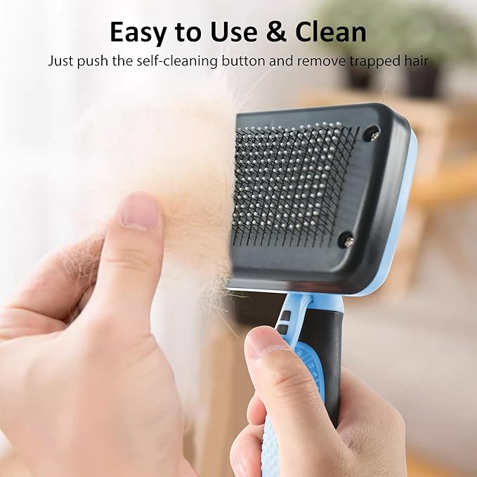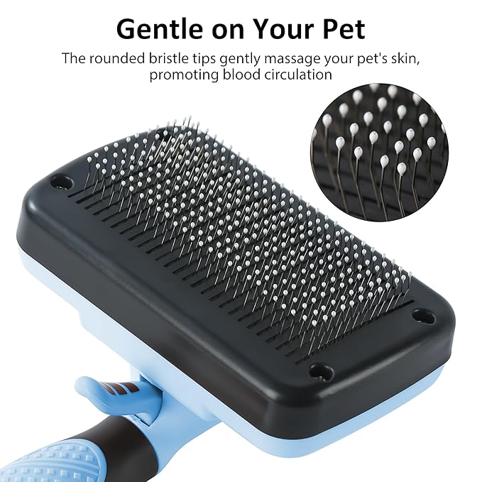- Easy to Clean - Say goodbye to tedious brush cleaning!Our cat brush features a self-cleaning button that retracts the bristles,allowing you to easily remove trapped hair and debris.Just push the button and wipe the pet brush clean.