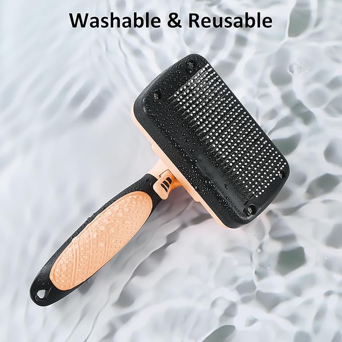 - Easy to Clean - Say goodbye to tedious brush cleaning!Our cat brush features a self-cleaning button that retracts the bristles,allowing you to easily remove trapped hair and debris.Just push the button and wipe the pet brush clean.