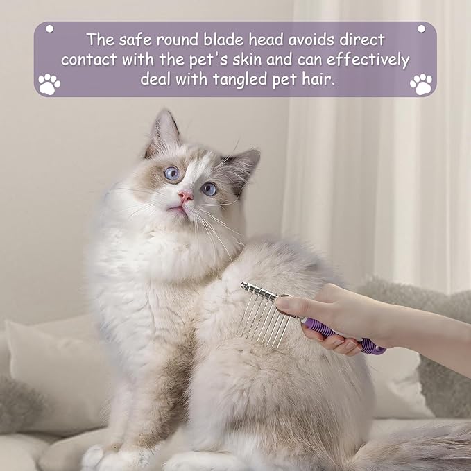Detangling Pet Comb for Dog & Cat, Grooming Comb with Long & Short Stainless Steel Teeth, Safely Remove Knots & Tangles for Healthy Shiny Coat, Gentle Effective Detangling Tool for Pet Hair (Violet)
