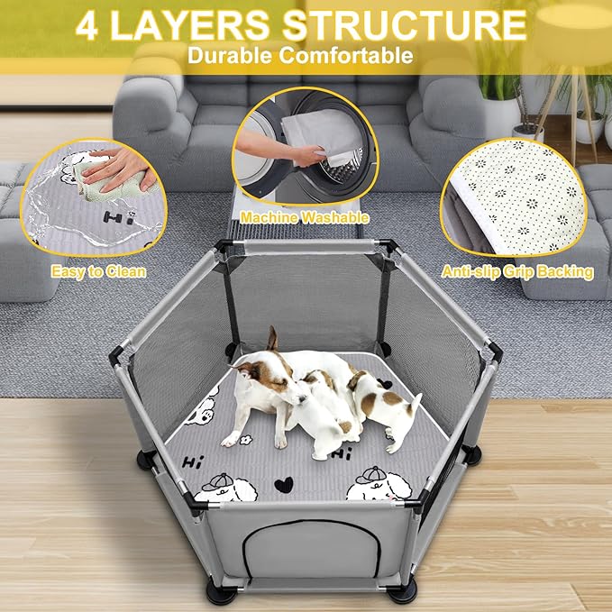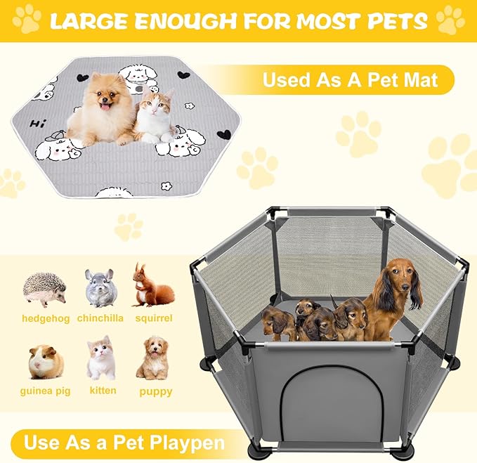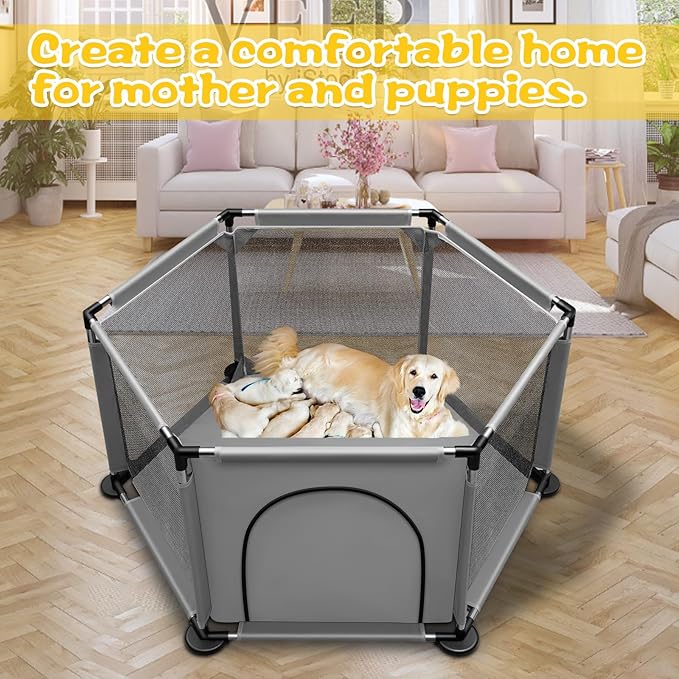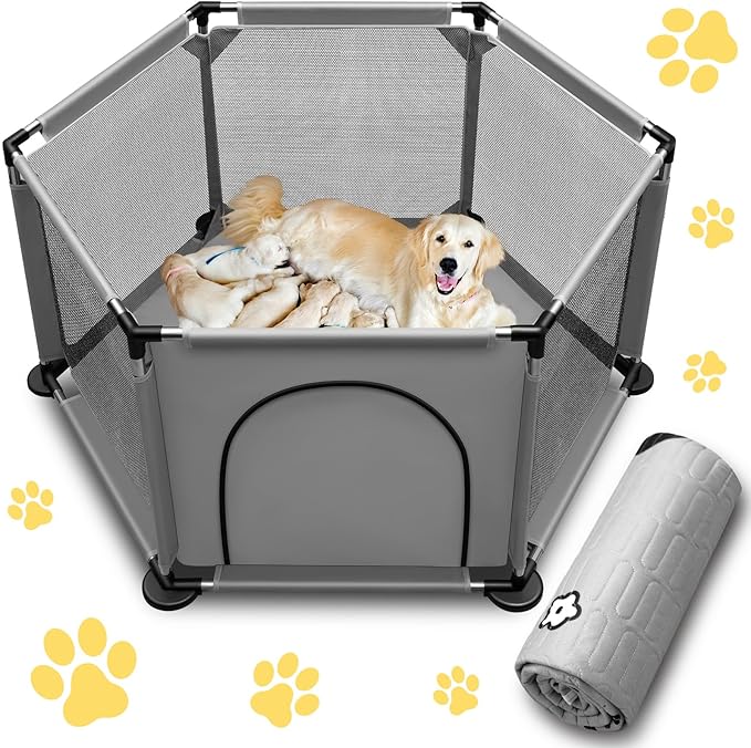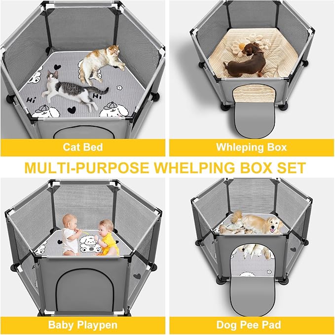 - Considerate Gift for PET Lovers: offering a practical set to puppy and kitten care, our puppy whelping supplies is the functional gift for pet lovers and breeders, This fence can be used as a delivery box or as a game fence for small pets or animals, to avoid damaging household items and dirtying the floor. Small pets can be placed inside the fence to play on their own, and keepers can sit inside and play with their beloved pets.