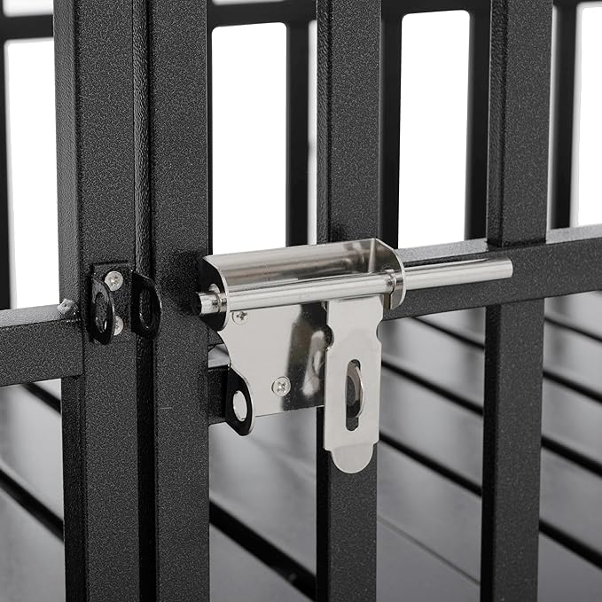 52inch Metal Heavy Duty Dog Cage with Door and Roof Doors of 2 Patent Latches,Pet Crate Doggy Kennel,w/ 2 Plastic Pans & 4 Lockable Caster Wheels,for Large or Medium Size Pets,Black