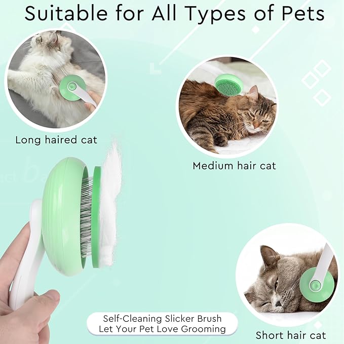 GJEASE Cat Grooming Glove Brush,Self-Cleaning Slicker Pet Brush for Short and Long Haired Pets,Dog Bath Brush for Shedding and Grooming,Removes Loose Hair and Tangles,Promote Circulation