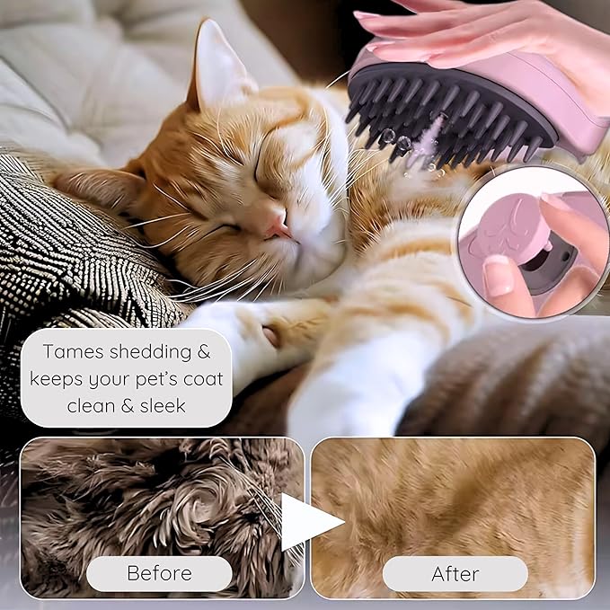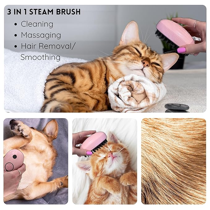 - 🐱 3 in 1 Cat Steam Brush - This cat hair brush is expertly designed to remove loose fur, clean, and massage your pet all in one step. Minimize hairballs and pet dander to keep your home clean and tidy!