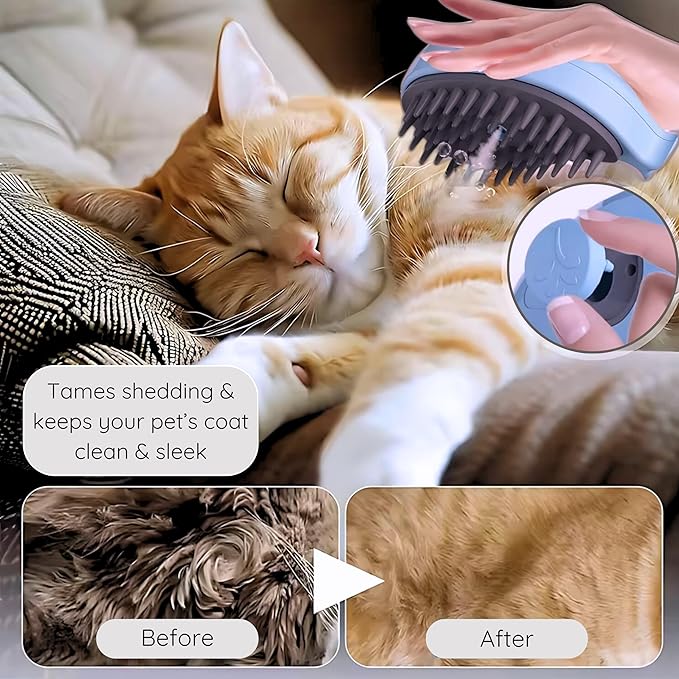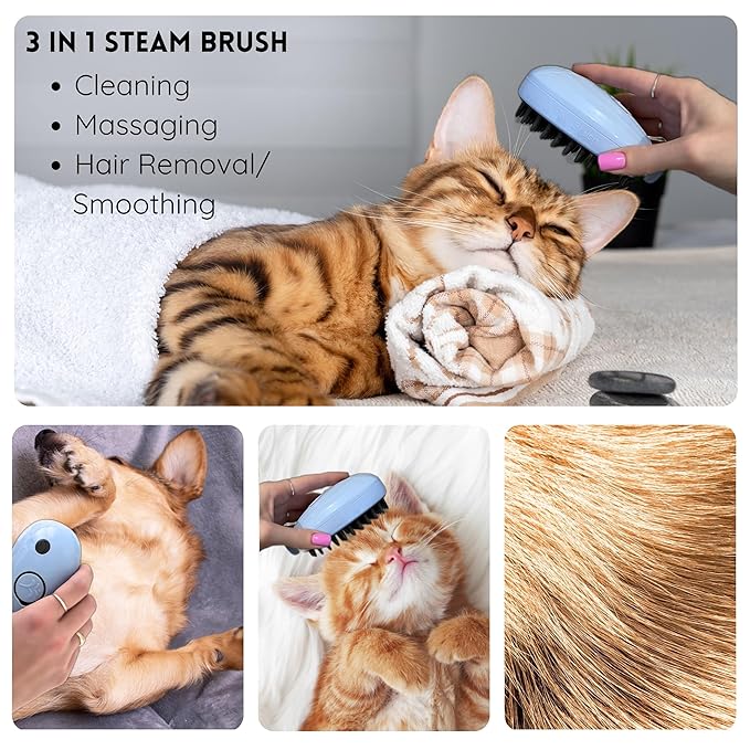 - 🐱 3 in 1 Cat Steam Brush - This cat hair brush is expertly designed to remove loose fur, clean, and massage your pet all in one step. Minimize hairballs and pet dander to keep your home clean and tidy!