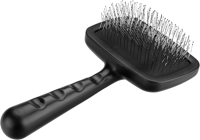 - Flexible cushion pad provides added comfort for pet during use. Ergonomic handle with built-in grips is comfortable to hold. Premium quality handle is long-lasting and will not become gummy over time. This cat and dog brush is ideal for indoor cats and dogs great than 30 lbs. This cat and dog slicker brush is ideal for short haired and long haired dogs and cats to remove excess hair.