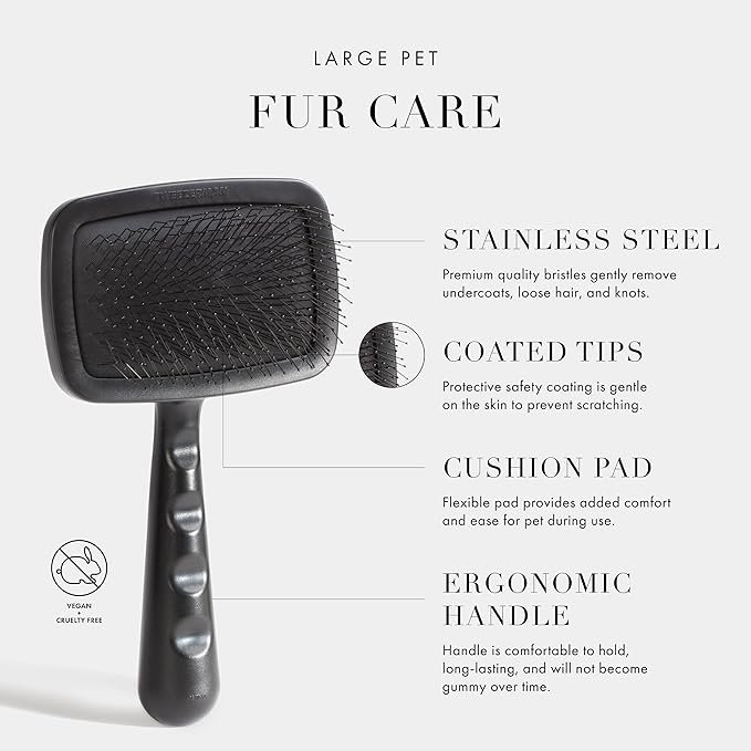 - This Cat and Dog Brush is veterinarian and Groomer tested and approved. Stainless Steel bristles with protective safety coating gently remove undercoats, loose hair, and detangles knots. Coated bristle tips are gentle on the skin to prevent scratching.