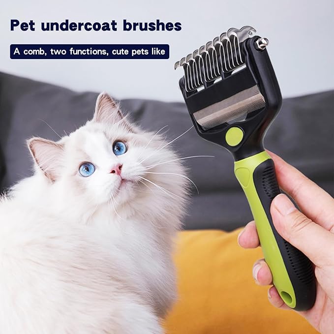 Pt brush for shedding,Dematting comb for Dogs, Cat deshedding Brush, Dog Grooming Rakes for long haired Dogs-Double Sided Shedding,Pet undercoat brushes Reduce Shedding by 95% (Green)