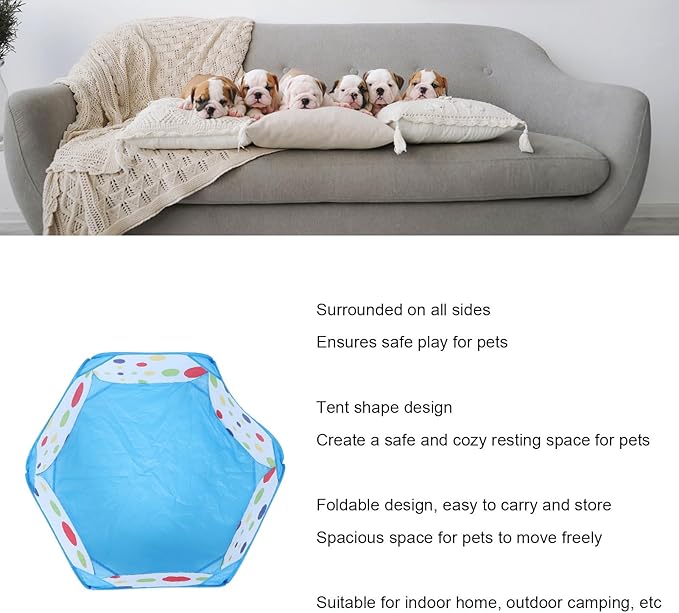 - [Spacious Area] : The pet exercise pen tent offers ample room for puppies and cats to move freely, play, and have a during their playtime.