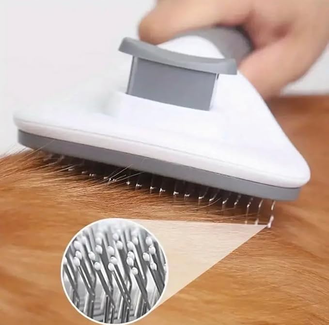 The pet grooming brush works wonders on my golden retriever’s thick coat. It removes loose fur effortlessly and my dog actually enjoys being brushed now.