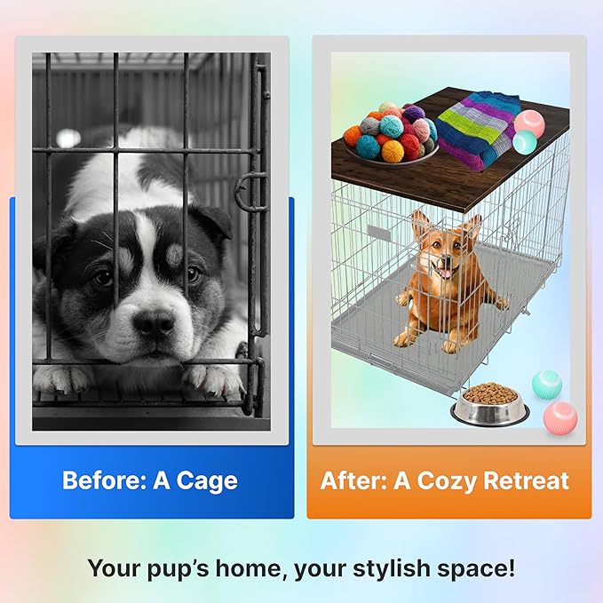 - [ EASY INSTALLATION ] - The Dog Crate Table Topper is designed for hassle-free assembly, making it convenient for pet owners. Simply follow the included instructions to securely attach the topper to your existing dog crate, instantly transforming it into an attractive and functional piece of furniture.