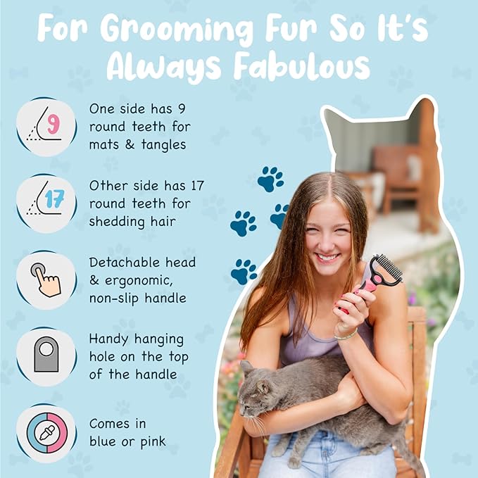 - ✅SAFE UNDERCOAT BRUSH: With a dual-sided design, use the 9-rounded teeth on the side for easy removal of mats and tangles and the 17-rounded teeth on other side perfect for deshedding and thinning hair. Our deshedder brush for dogs gently removes loose hair and eliminates tangles, knots without irritation or scratching. Prioritize your pet’s comfort and safety with every grooming session.