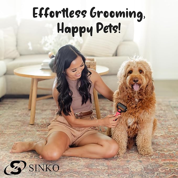 Sinko Undercoat Rake for Dogs & Cats, Dematting Comb with Extra Wide Double-Sided Stainless Teeth for Detangling, Deshedding, Brushing & Removing Shed Fur, Knots, Mats, and Tangles in Pets (Pink)