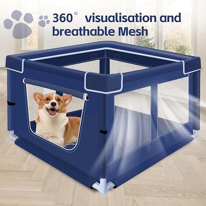 - 🐶『Ample Space and Visibility』- The design offers ample space for your puppy to move around freely. Our fence is convenient for the owner to carry the dog in and out, breathable space for the dog, the transparent nature of the mesh cloth allows for good visibility, so your pet doesn't feel isolated while still being contained. It gives them a sense of security while allowing you to keep an eye on them. and the Upward rolling door design is convenient for the dog to enter and exit the door.