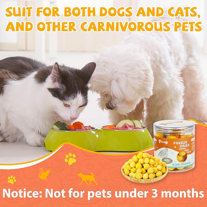 - Natural and Additive-Free: PAWUP's freeze-dried quail egg yolk treats are RAWHIDE-FREE, GRAIN-FREE and GLUTEN-FREE, providing a pure and wholesome snack for your pets. With no artificial additives, these treats allow cats and dogs to enjoy the pure taste of quail egg yolks