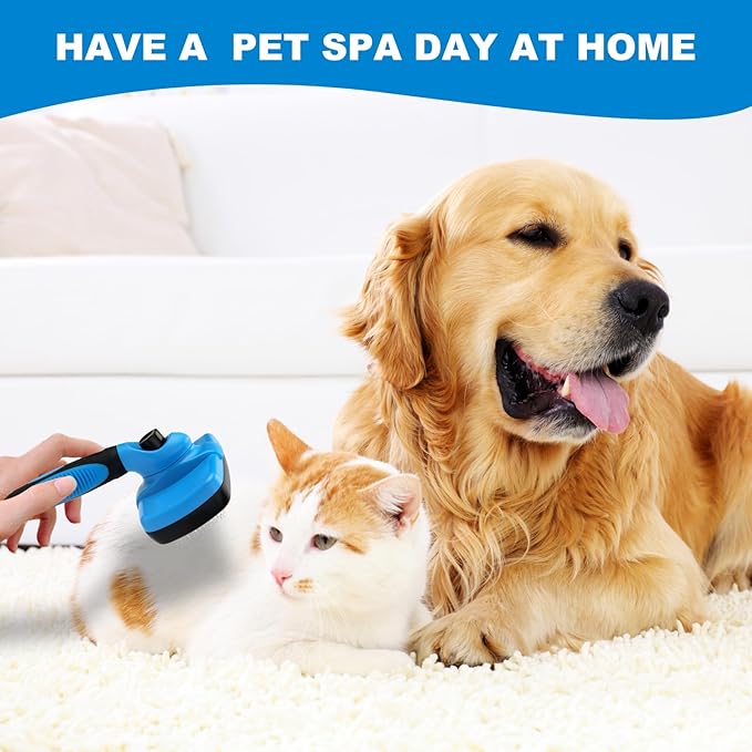 Dog and Cat Brush,Slicker Brush for Shedding Dogs and Cats,Suitable for Haired Pets,Grooming,Self-Cleaning,Perfect Retractable,Large(Blue)